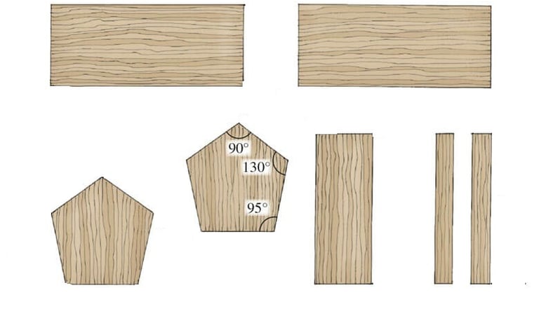 Ora è il momento di trasformare i nostri pannelli di legno in pezzi di puzzle che, una volta assemblati, diventeranno la casetta perfetta. Ecco cosa dobbiamo tagliare:
